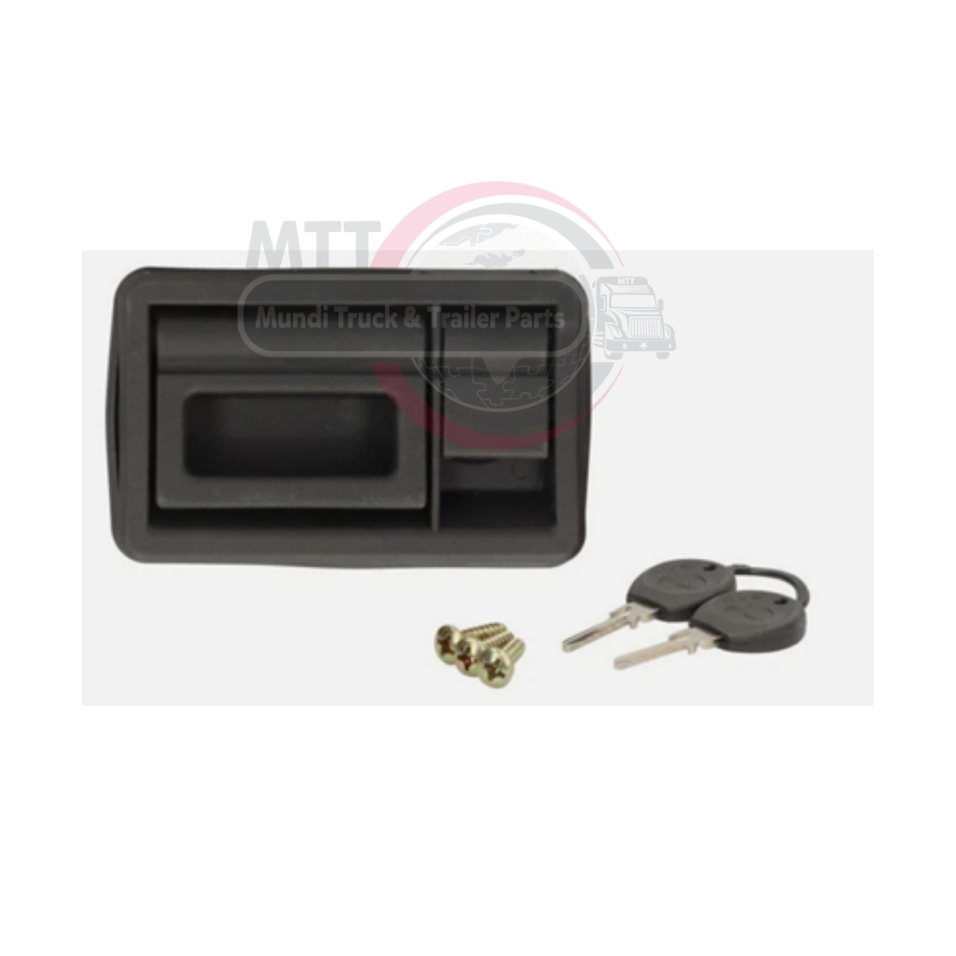 DESCRIPTION: Luggage Compartment Handle ENGINE HOOD HANDLE ( Luggage compartment handle for coach luggage compartments, plastic, black//EPDM moulded rubber seal PA6 %30 GFR//) MERCEDES O403 2000 & O350